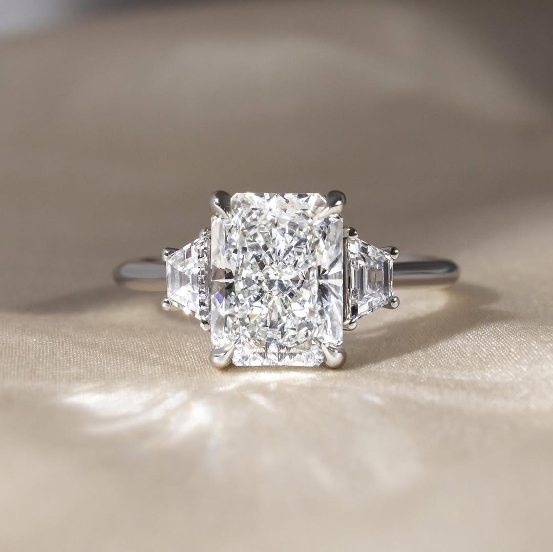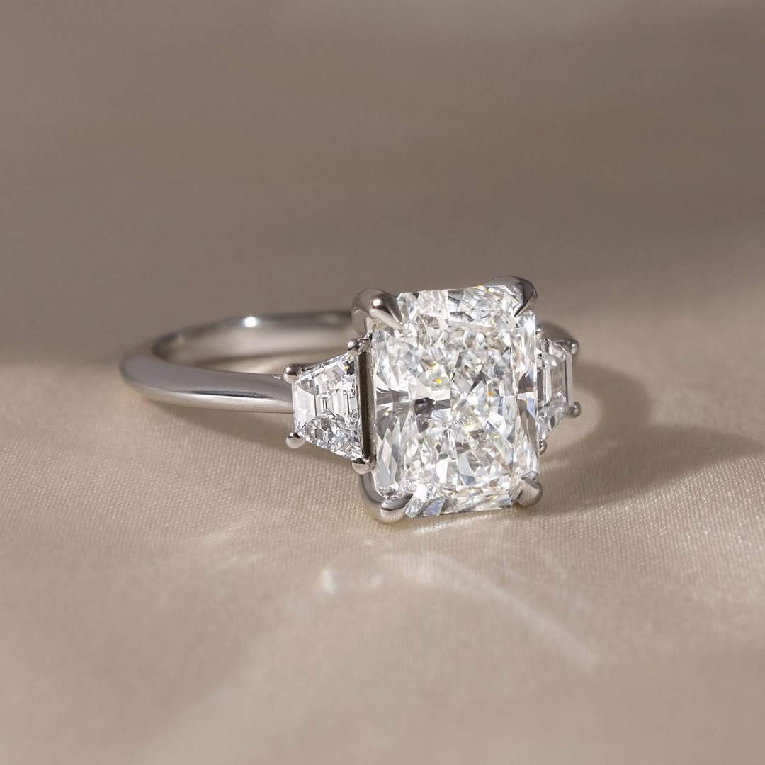 1.0-3.0 CT Radiant Lab Grown Diamond Three Stone Style Engagement Ring – violetjewels