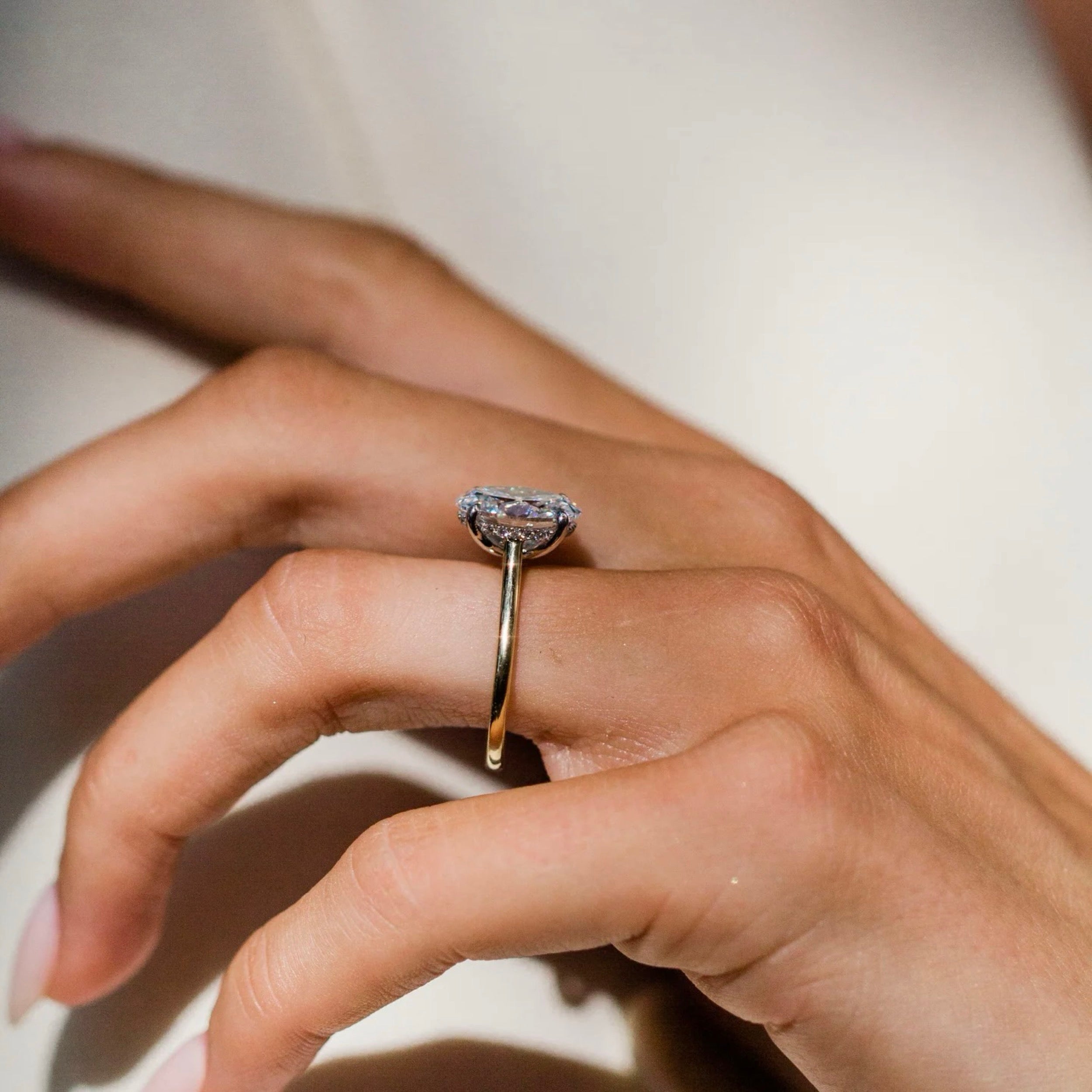 1.0-3.05 CT Emerald Shaped Lab Grown Diamond Hidden Halo Engagement Ring