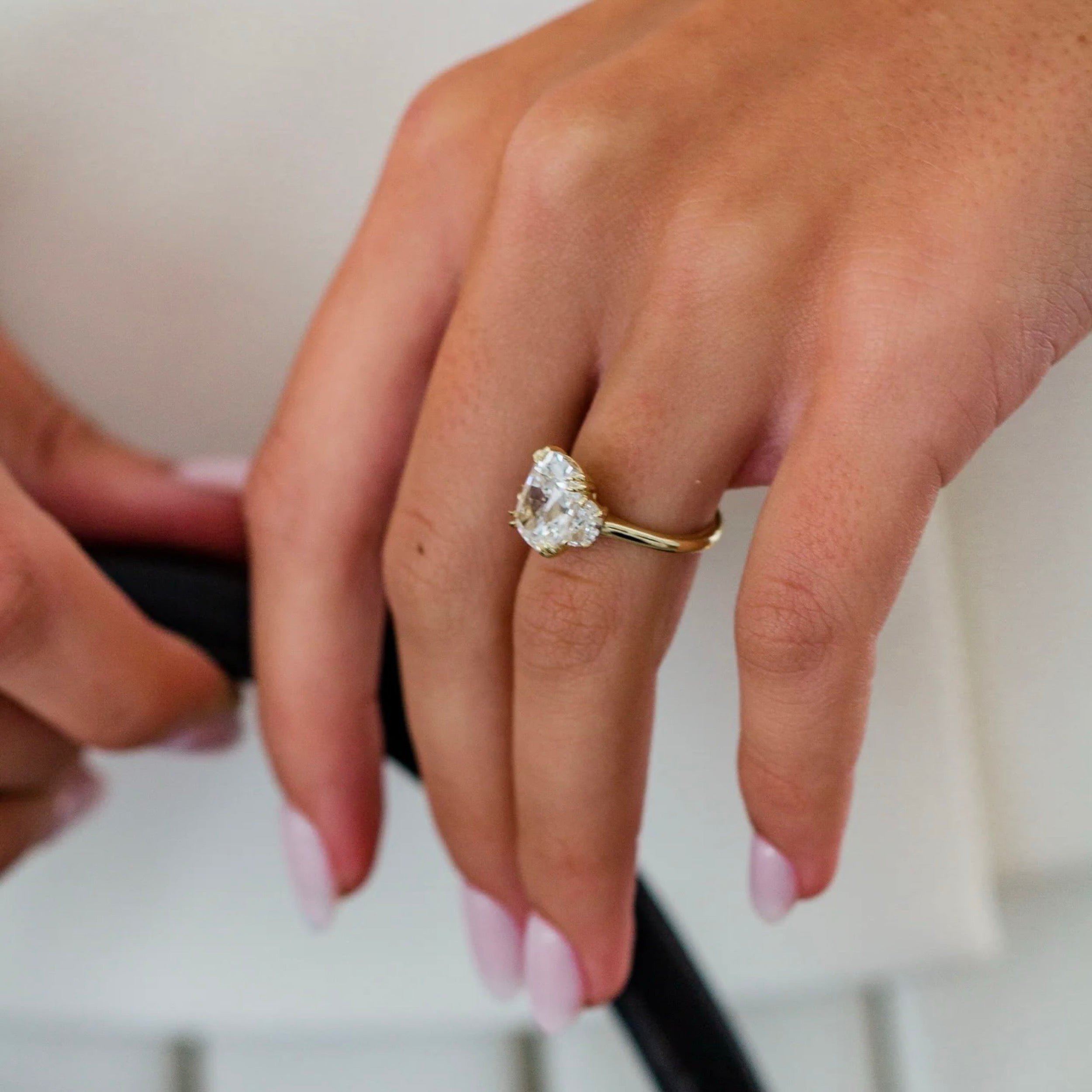 2.0-4.0 CT Cushion Shaped Lab Grown Diamond Three Stone Engagement Ring