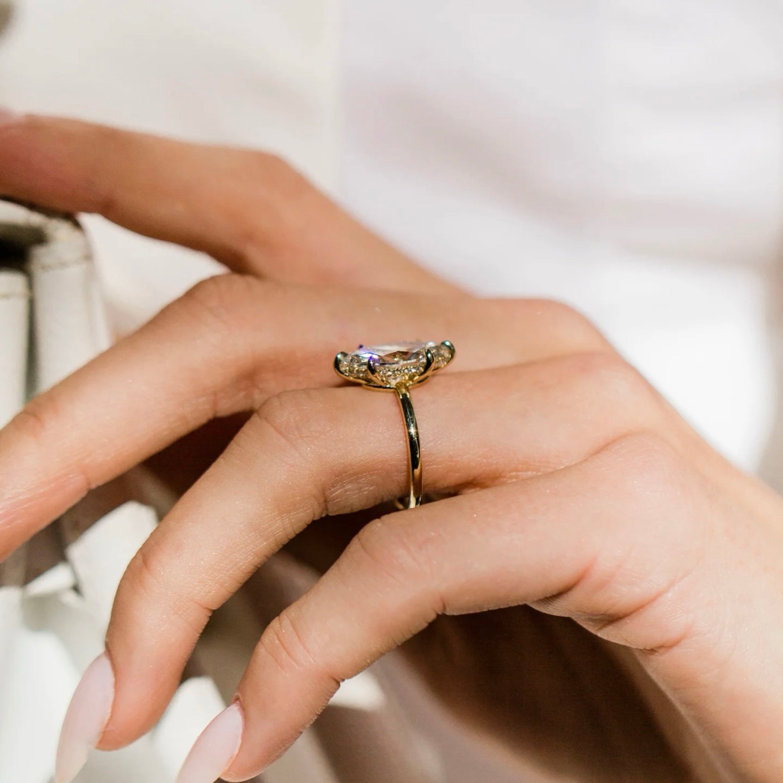 2.0-4.0 CT Marquise Shaped Lab Grown Diamond Hidden Halo Engagement Ring