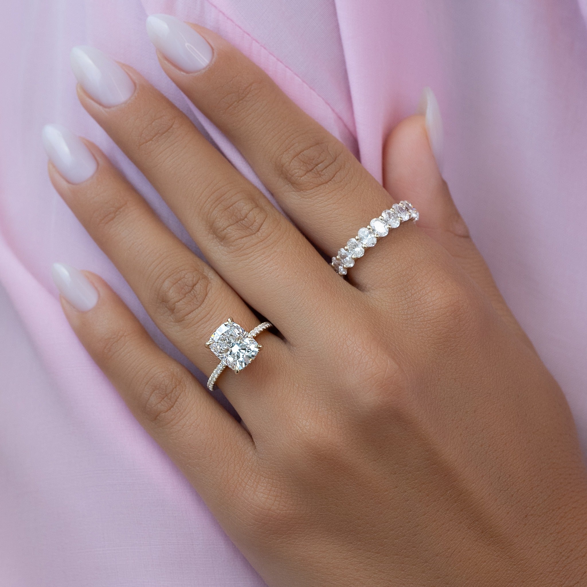 1.0-3.0 CT Oval Lab Grown Diamond Hidden Halo Pave Engagement Ring