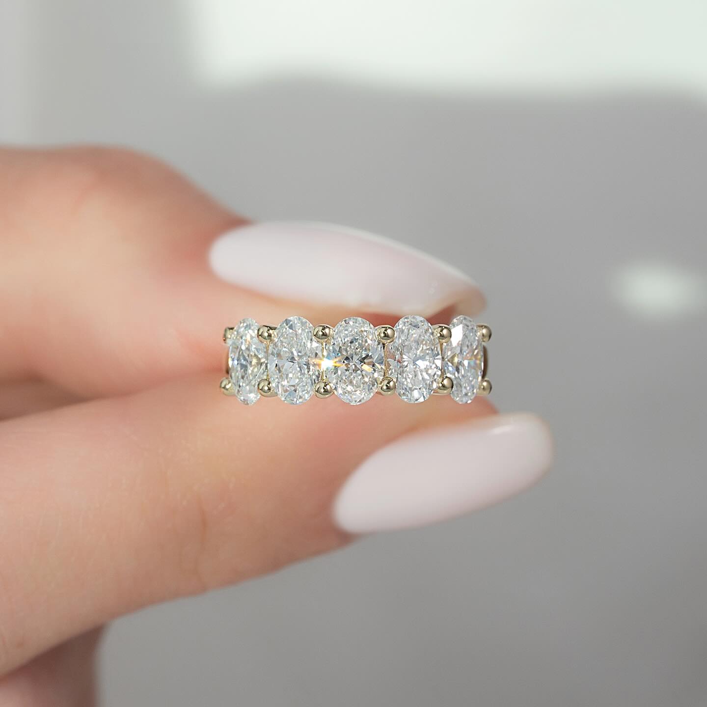 2.0 TCW Oval Diamond Five Stone Wedding Band