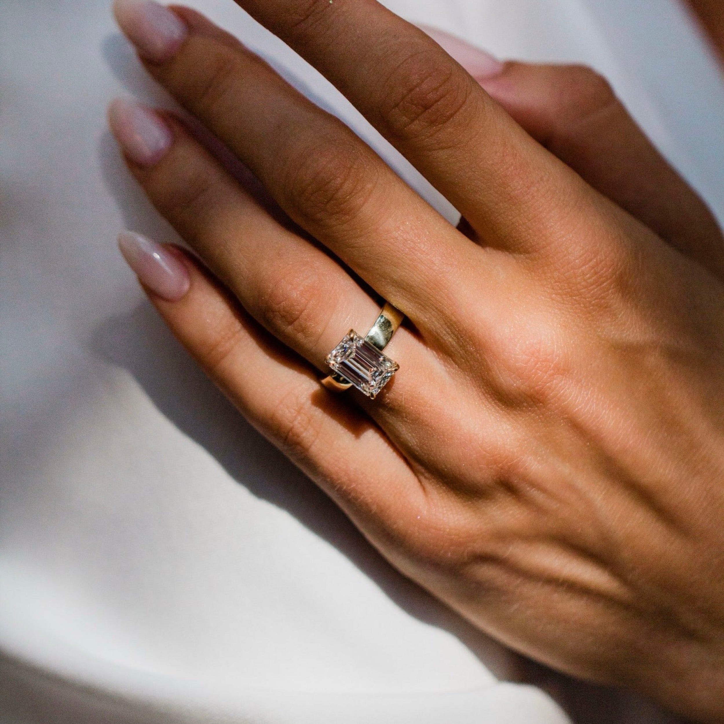 2.0-4.0 CT Emerald Shaped Lab Grown Diamond Solitaire Engagement Ring