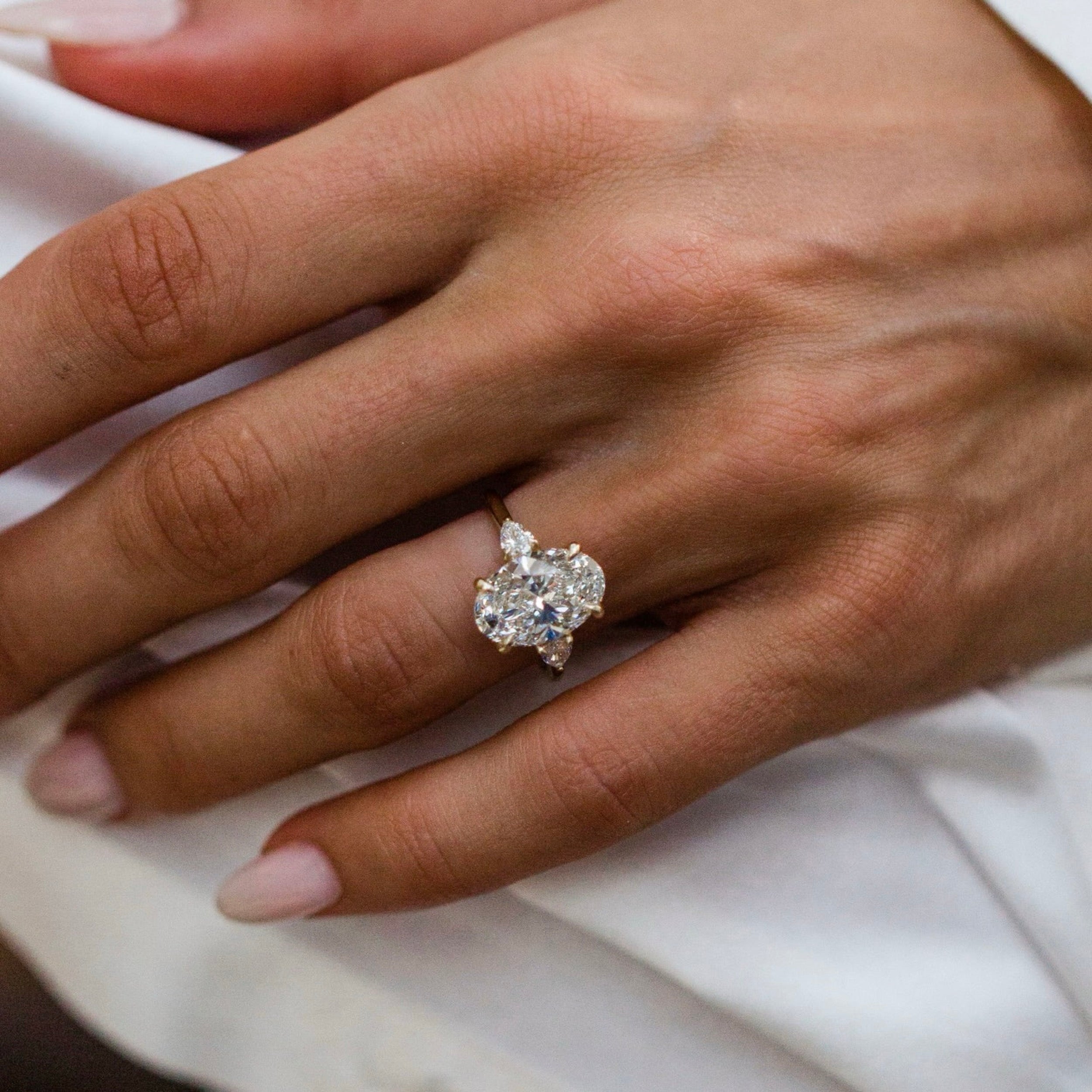 2.0 -4.0 CT Oval Shaped Lab Grown Diamond Three Stone Engagement Ring