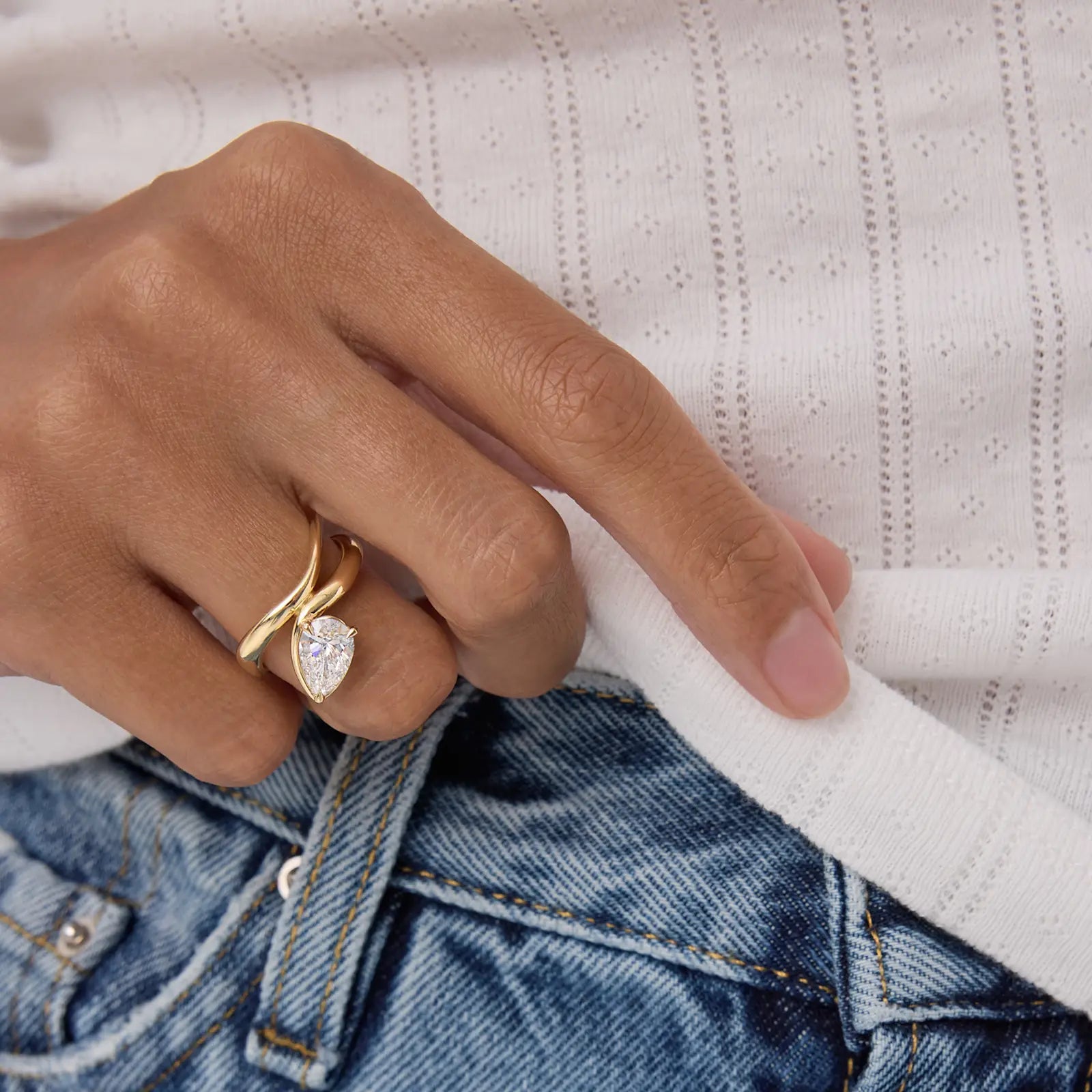 ✦ The Ring Shown in the Picture Holds a Beautiful Pear Cut Lab Grown Diamond.