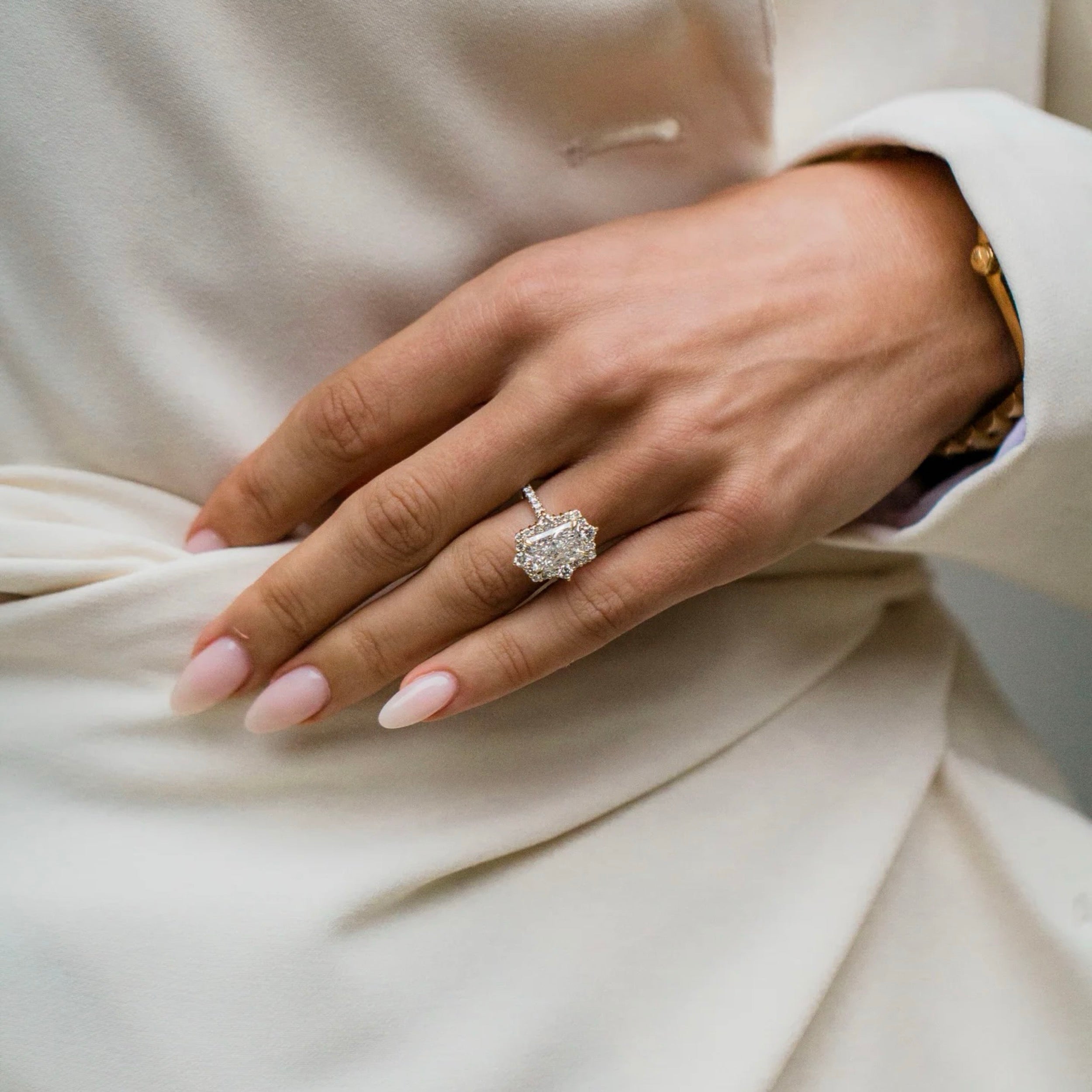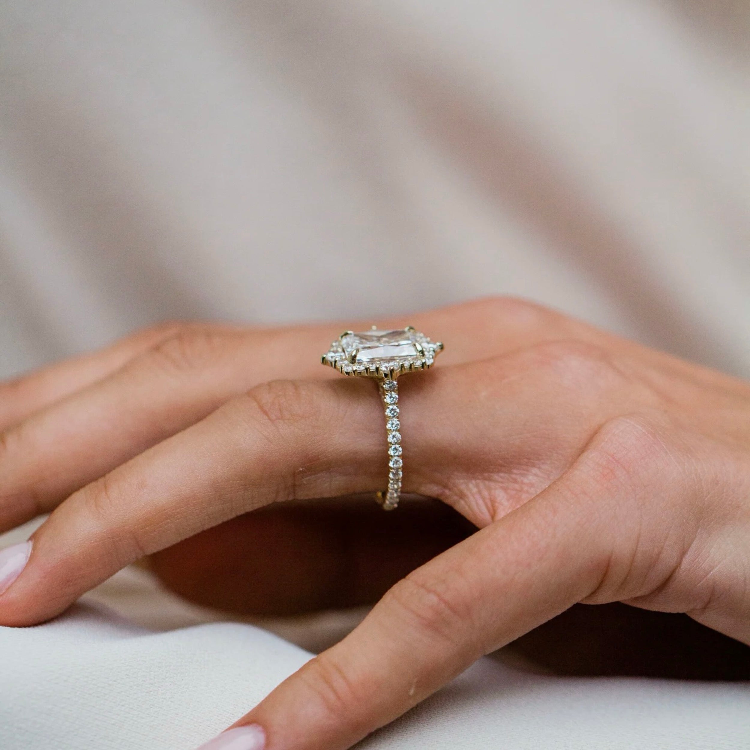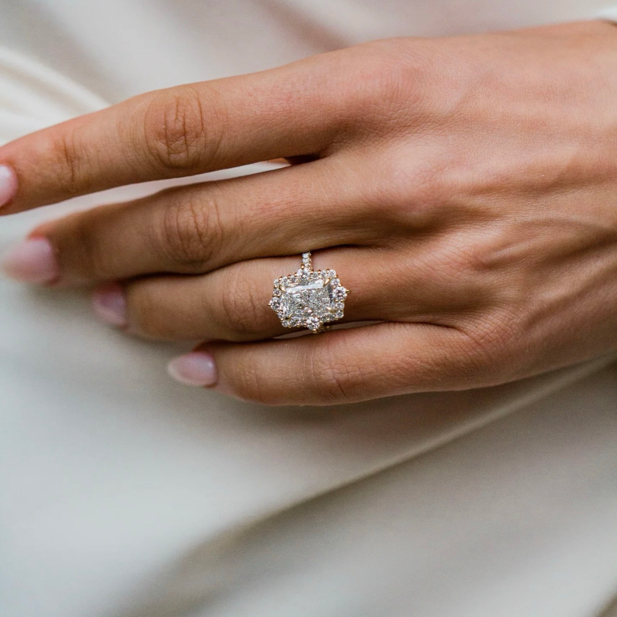 1.50-3.50 CT Radiant Shaped Lab Grown Diamond Hidden Halo & Pave Engagement Ring