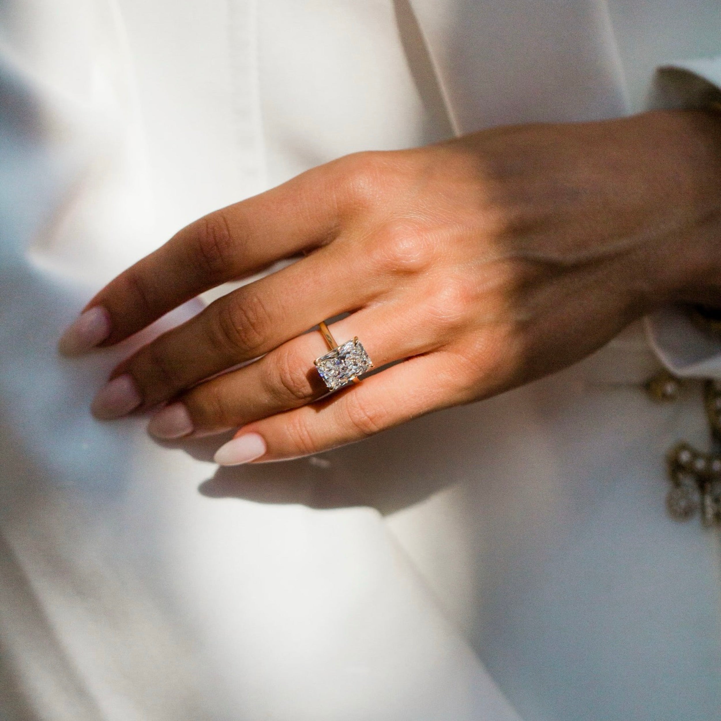 ✦ The Ring Shown in the Picture Holds a Beautiful Radiant Cut Lab Grown Diamond.