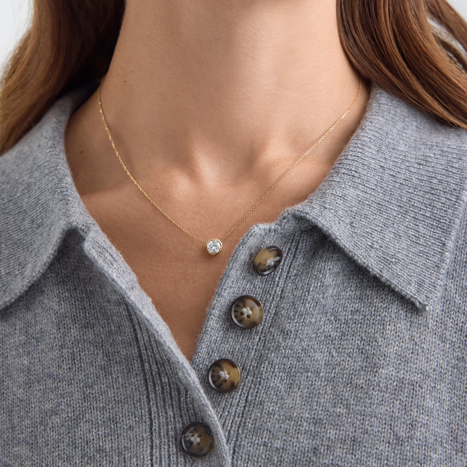 0.60 CT Round Bezel E/VS1 Lab Grown Diamond Necklace