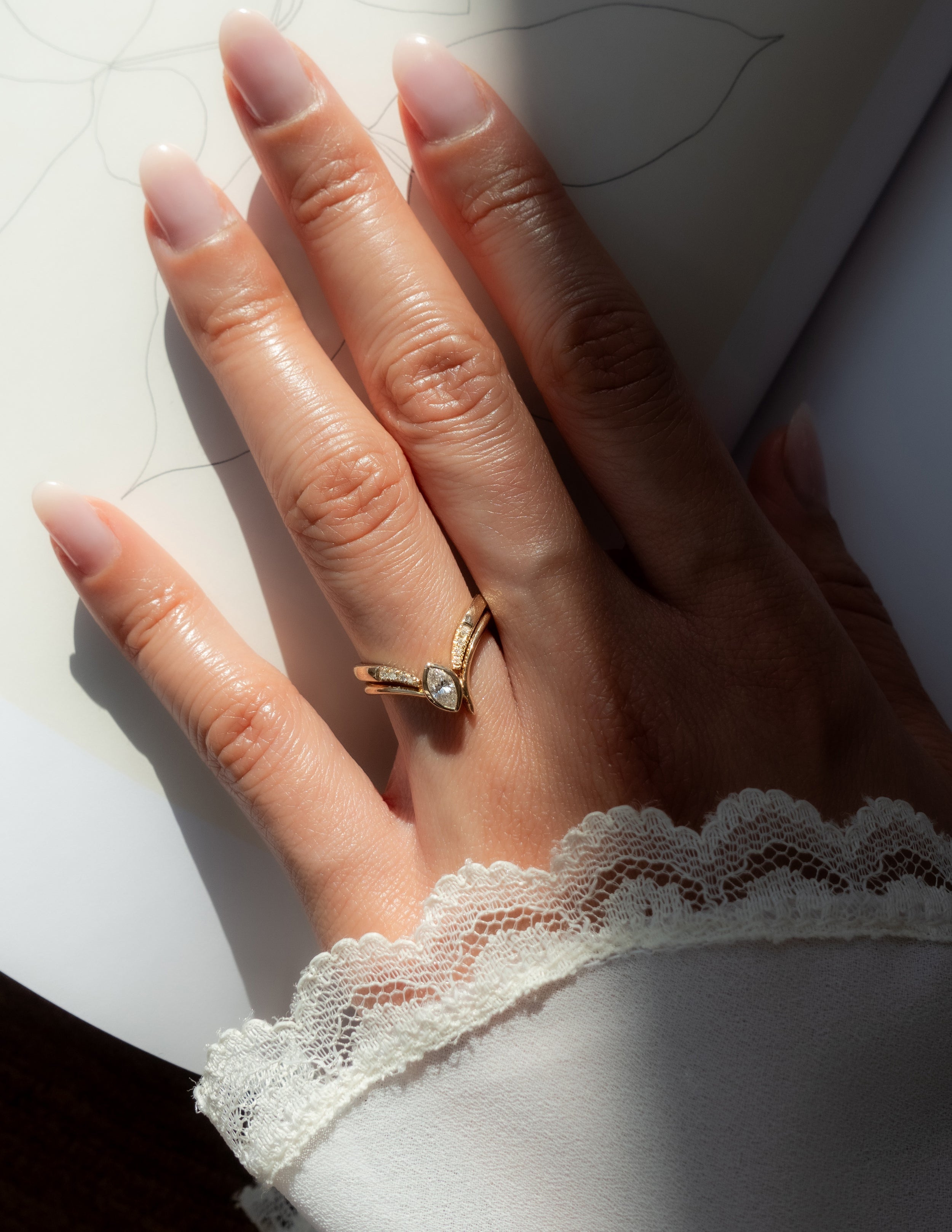 ✦ The Ring Shown in the Picture Holds a Beautiful Marquise Cut Lab Grown Diamond.