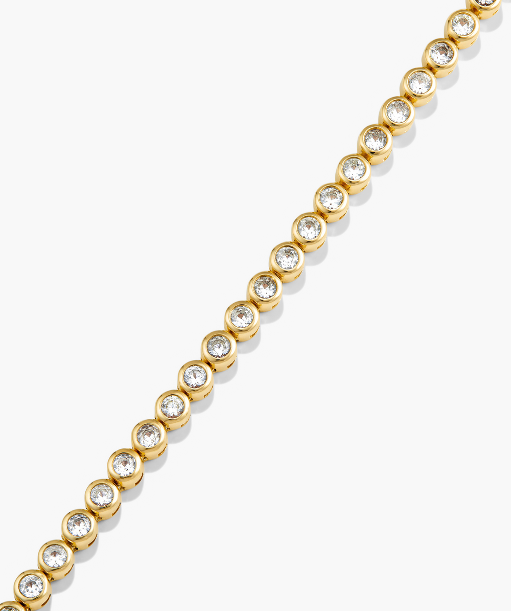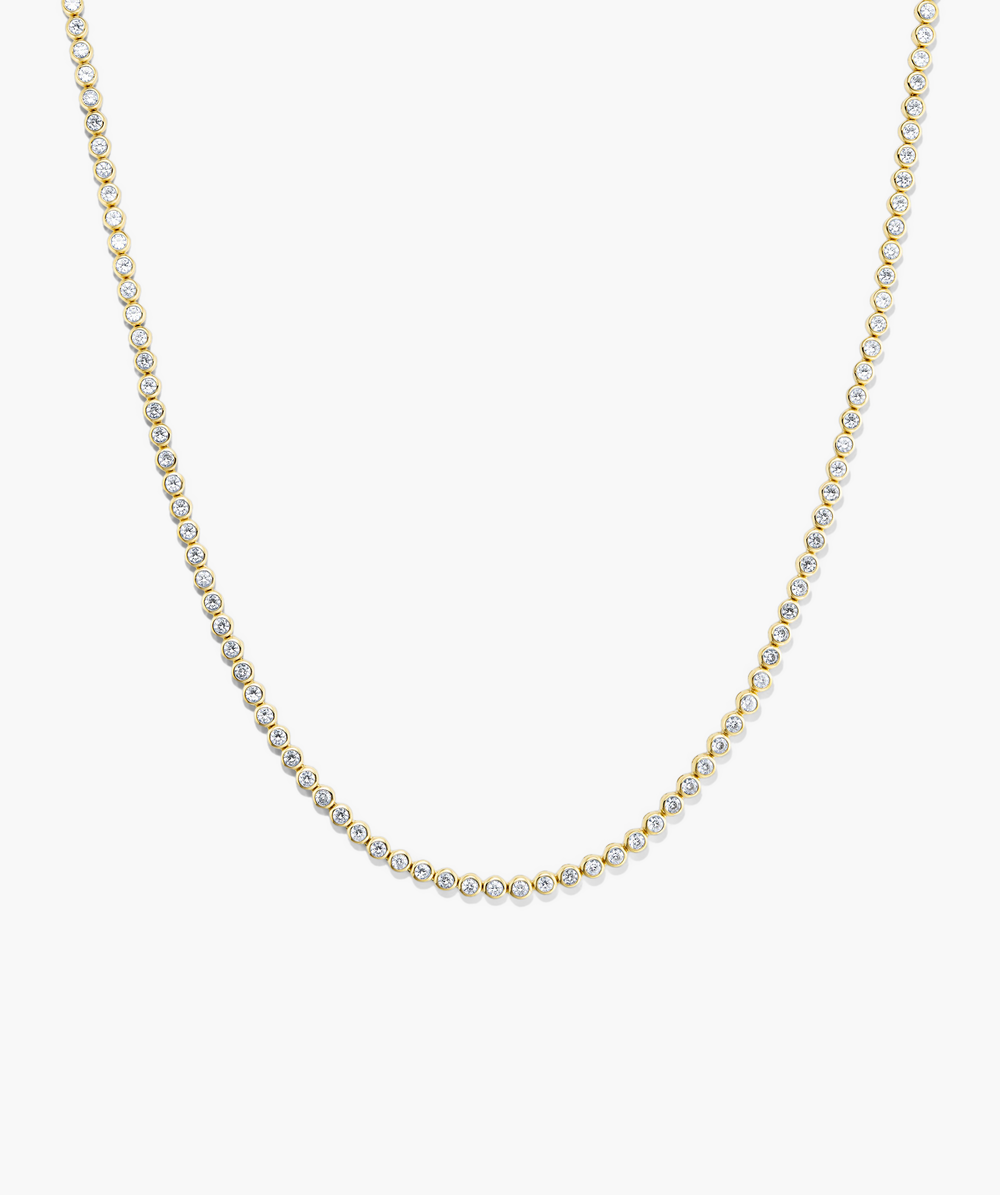 Round Bezel Lab Grown Sapphire Diamond Tennis Necklace