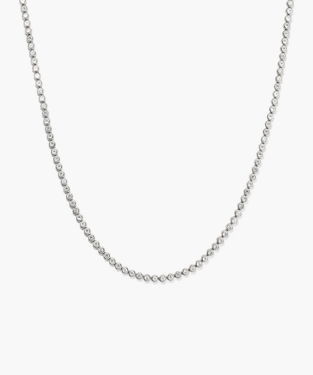 Round Bezel Lab Grown Sapphire Diamond Tennis Necklace